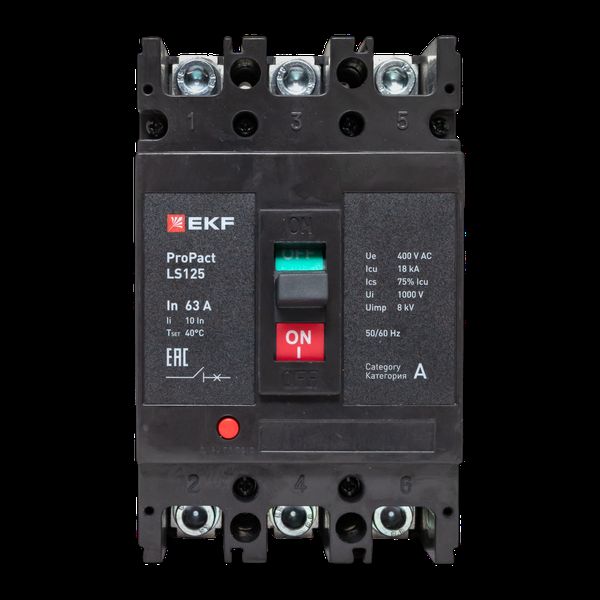 Выключатель автоматический в литом корпусе ProPact LS125 63А 3P 18кА EKF mccb-125-18-3-63-ls