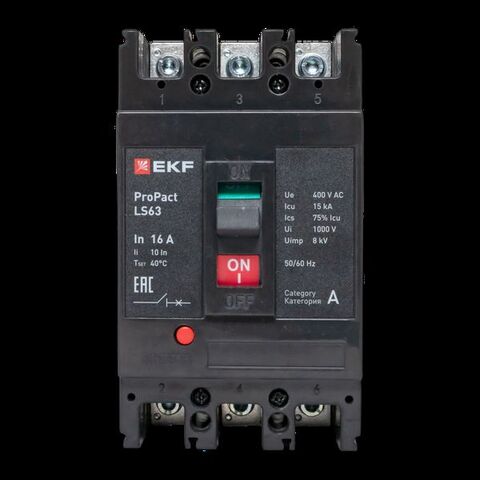Выключатель автоматический в литом корпусе ProPact LS63 16А 3P 15кА EKF mccb-63-15-3-16-ls