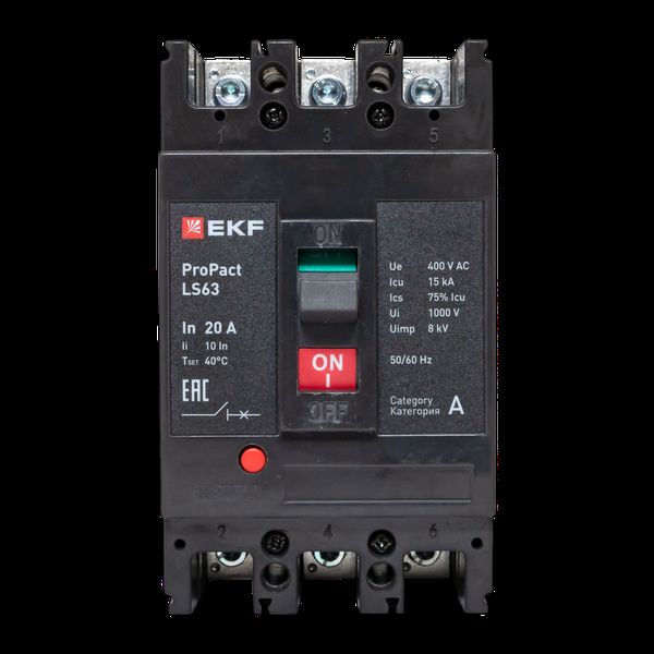Выключатель автоматический в литом корпусе ProPact LS63 20А 3P 15кА EKF mccb-63-15-3-20-ls