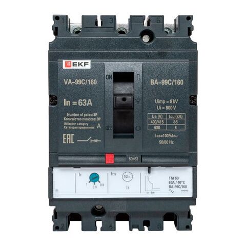 Выключатель автоматический в литом корпусе ВА-99C 160/63А 3P 35кА с термомагнитным расцепителем EKF mccb99C-160-63