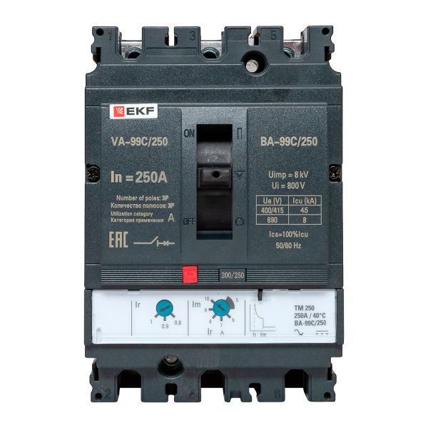 Выключатель автоматический в литом корпусе ВА-99C 250/250А 3P 45кА с термомагнитным расцепителем EKF mccb99C-250-250