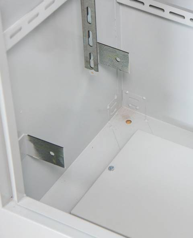 Покрытие и внутреннее оснащение: Корпус окрашен полимерно-порошковой краской RAL 7035 с предварительной антикоррозийной обработкой. Внутренняя сторона двери оснащена перфорированным профилем (шаг 25 мм) для монтажа вспомогательных аппаратов и клеммных колодок. На монтажных платах (оцинкованная сталь 2.0 мм) достаточно места для установки трансформаторов тока и шинных мостов.