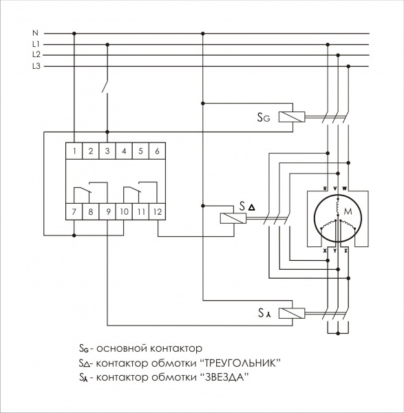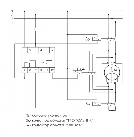 "звезда-треугольник", для запуска электродвигателей, монтаж на DIN-рейке 35 мм
