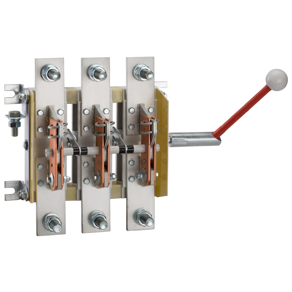 Разъединитель 3 полюсный на номинальный ток 1000 А, где установлена съемная рукоятка, а механическая износостойкость составляет 6300 циклов.