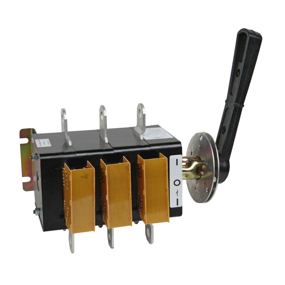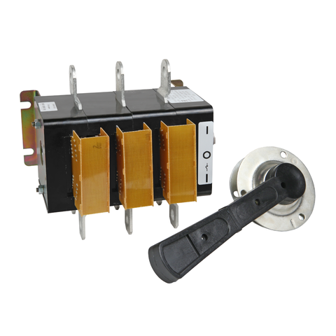 Выключатель-разъединитель 3 полюсный на номинальный ток 250 А, в котором установлена съемная рукоятка.