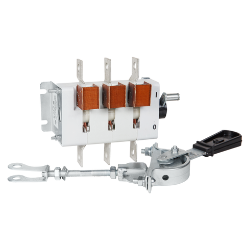 Выключатель-разъединитель 3 полюсный на номинальный ток 400 А, в котором установлена несъемная рукоятка.