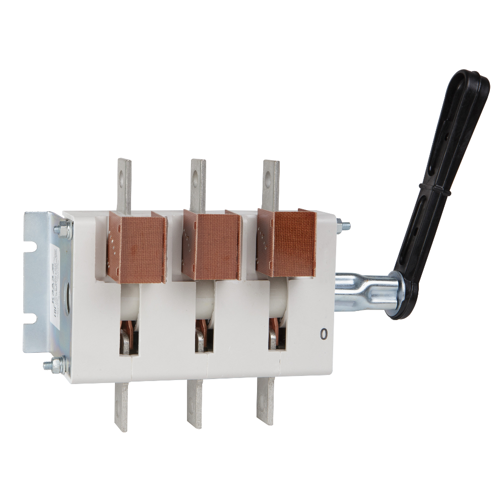 Выключатель-разъединитель 3 полюсный на номинальный ток 400 А, в котором установлена съемная рукоятка.