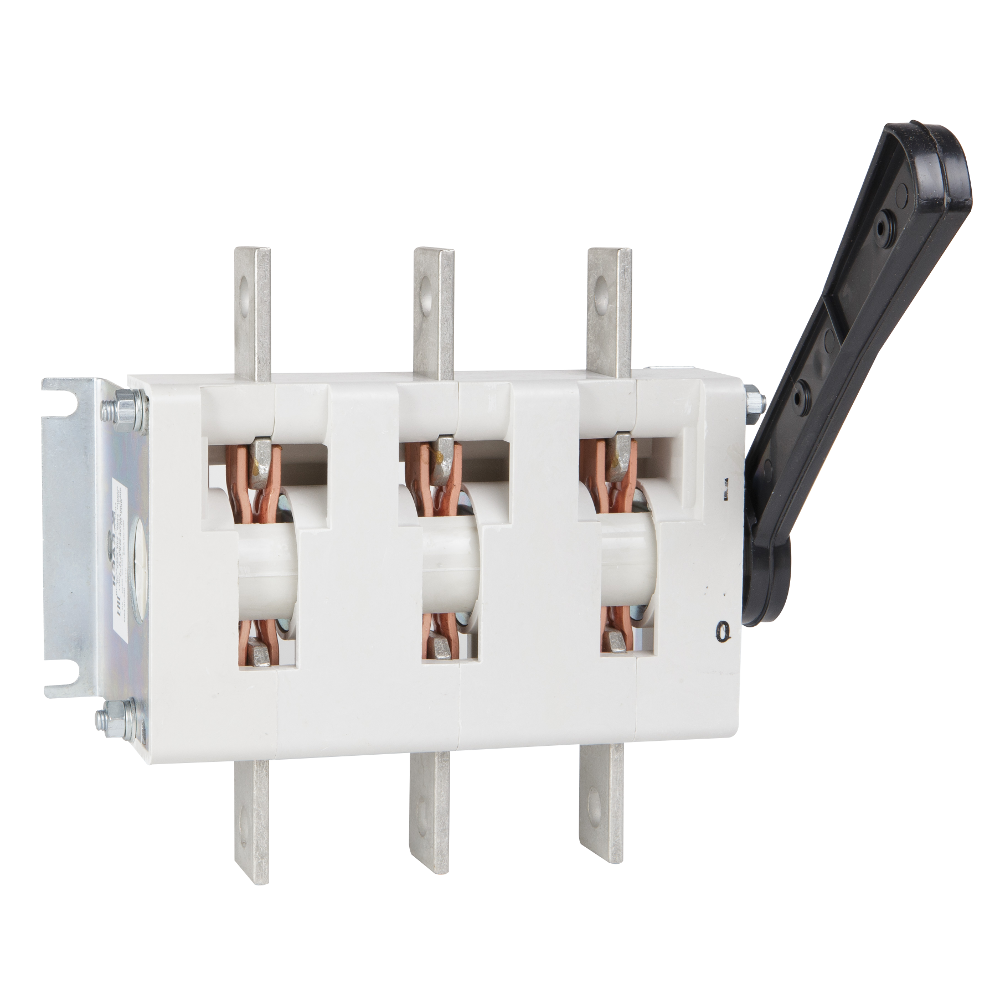 Выключатель-разъединитель 3 полюсный на номинальный ток 630 А, в котором установлена несъемная рукоятка.
