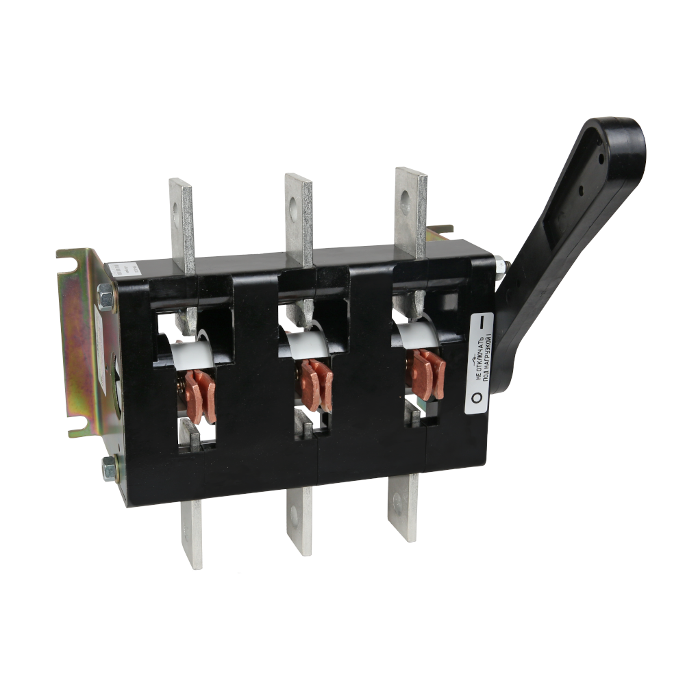 Выключатель-разъединитель 3 полюсный на номинальный ток 630 А, в котором установлена несъемная рукоятка.