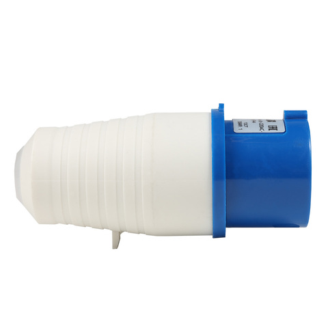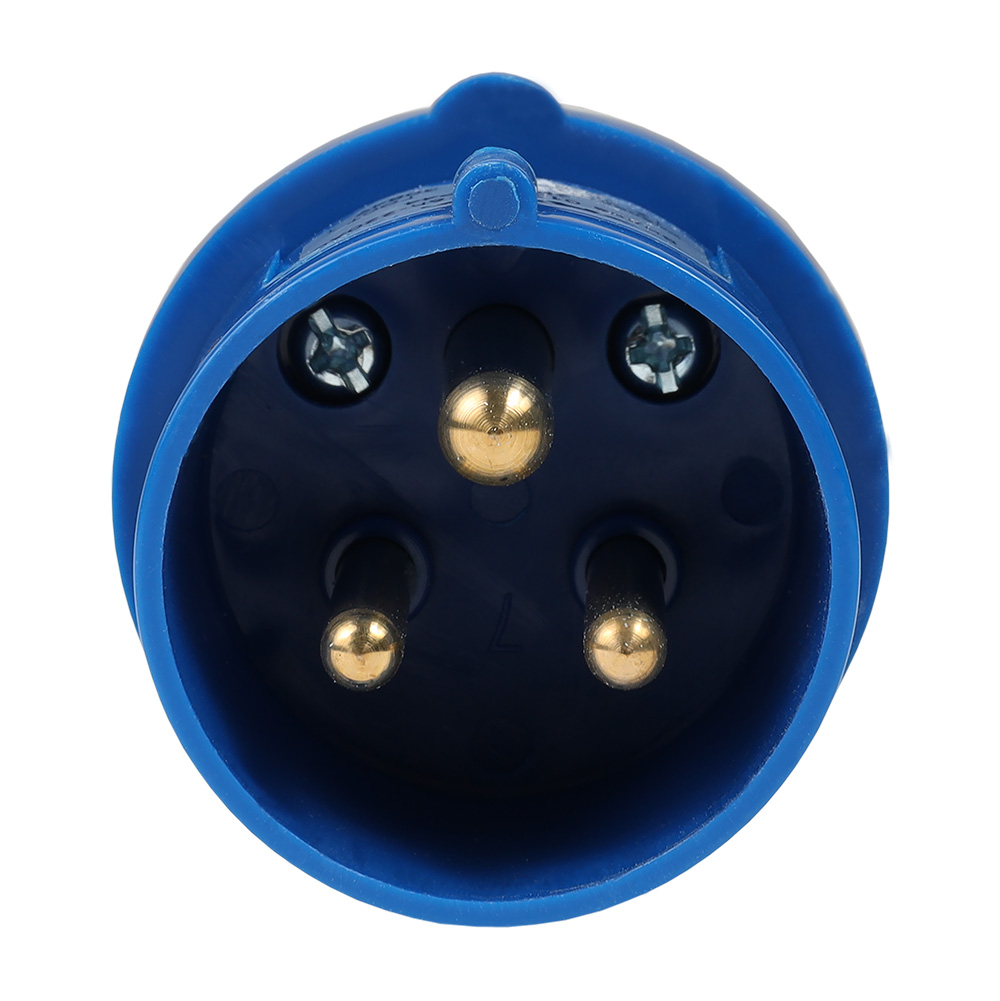 Силовая вилка 3 полюсная на номинальный ток 16 А и рабочее напряжение переменного тока 220 В.